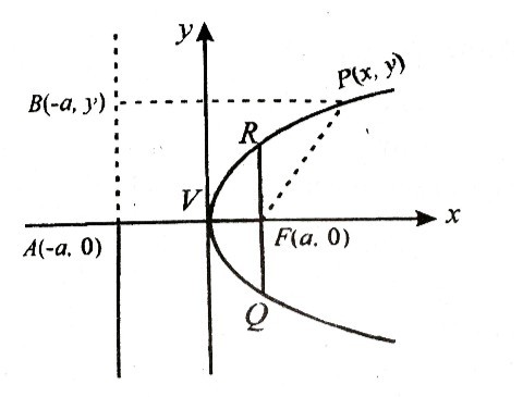A parabola is a locus of points, equidistant from a given point, called the focus, and from a given line called the directrix.
