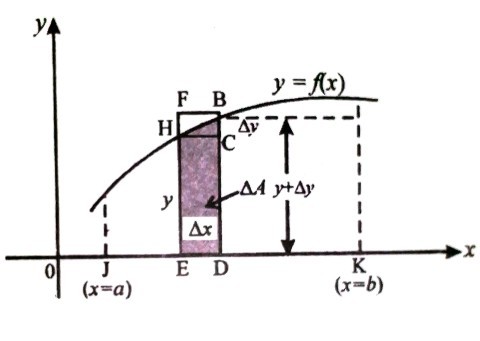 Take a fixed point H on the curve such that OE = x and EH = y. take a neighboring point B such that OD = x + ∆x