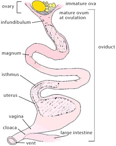 Process of egg formation is controlled by the hormones. The egg is formed partly in the ovary and partly in the oviduct.