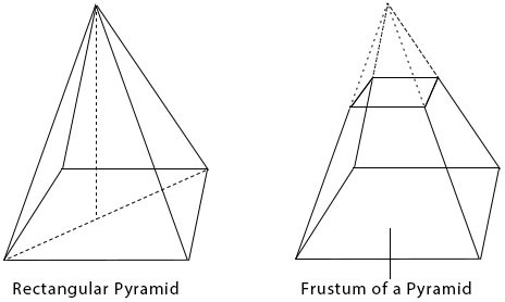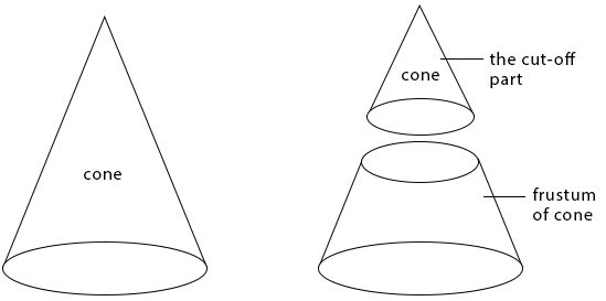 A frustum is the remaining part of cone or pyramid when the top part is cut off as shown below. Daily examples of frustums are buckets, lamps shades e.t.c.