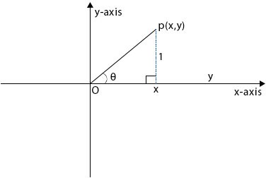 The circle is called a unit circle. Point P has co-ordinate (x,y) and lOPl = 1 unit.