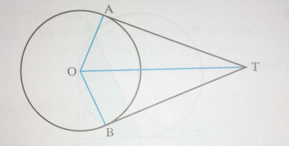 Given: a point T outside a circle, centre O, TA and TB are tangents to the circle at A and B.