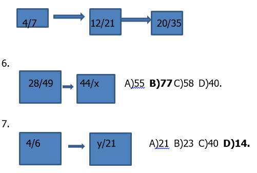2. Find the equivalent fraction of 7/15 with a numerator 63. A)25/63 B)63/135 C)43/63 D)63/145.