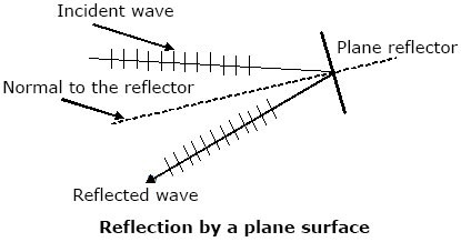 Reflection occurs in waves when they encounter an obstacle and are made to propagate in the opposite direction as shown in the diagram below