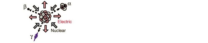 Radioactivity refers to the particles which are emitted from nuclei as a result of nuclear instability. Because the nucleus experiences the intense conflict between the two stronger forces in nature, it should not be surprising that there are many nuclear isotopes which are unstable and emit some kind of radiation. The most common types of radiation are called alpha, beta and gamma radiation, but there are several other varieties of radioactive decay.